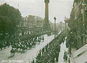 The Inauguration of Seán T. O'Kelly in 1945. The 2nd Cavalry Squadron of the Blue Hussars escort the president, who travelled in the late Queen Alexandra's landau. The Landau and the Hussars were later scrapped.