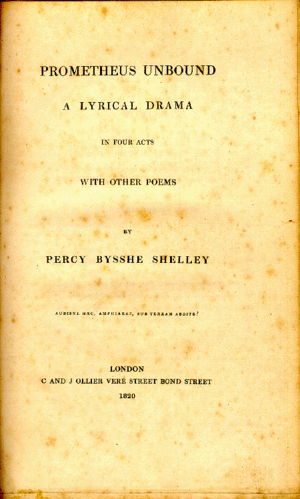 - Shelley, Percy. Prometheus Unbound. London: C and J Ollier, 1820.