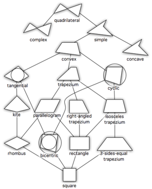 تعطى شجرة عائلة رباعيات الأضلاع بالشكل التالي. حيث يكون الشكل في الأسفل هو حالة خاصة من الشكل الأعلى.