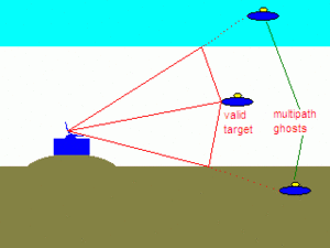 وستتصرف كالتالي: صدى الطائرة إلى الرادار هو انعكاس من عدة اتجاهات من الأرض و من فوق الهدف يظهر بجهاز الاستقبال كهدف حقيقي تحت الهدف الأصلي قد يحاول الرادار أن يوحد الأهداف معطيا للهدف ارتفاع غير حقيقي أو قد يمنعها بالمرة وهو الأسوأ بسبب اختلاف المعطيات للهدف أو تطبيقات غير ممكنة. تلك المشاكل ممكن التغلب عليها بواسطة دمج الخريطة بالرادار ومنع جميع أنواع الصدى التي تظهر تحت الأرض أو فوق ارتفاع معين. الأنواع الحديثة من أجهزة الرادارات الأرضية للمطارات تستخدم الخوارزميات للتعرف على الأهداف المزيفة بواسطة مقارنة النبضات الآتية حديثا مع المجاورة معها، مثل حساب الراجع الغير محتمل مثل حساب الارتفاع والمسافة والتوقيت ما بين الإرسال والاستقبال.