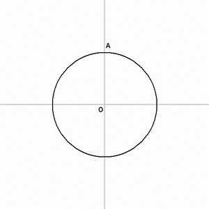 - Construct a vertical line through the center. Mark one intersection with the circle as point A.