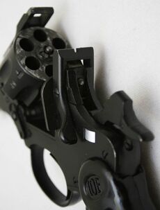 A revolver can be kept loaded and ready to fire without fatiguing any springs and is not very dependent on lubrication for proper firing.[30] Additionally, in the case of double-action-only revolvers there is no risk of accidental discharge from dropping alone, as the hammer is cocked by the trigger pull.[30] However, the revolver's clockwork-like internal parts are relatively delicate and can become misaligned after a severe impact, and its revolving cylinder can become jammed by excessive dirt or debris.[30]