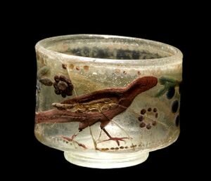 The Roman writers Statius and Martial both indicate that recycling broken glass was an important part of the glass industry, and this seems to be supported by the fact that only rarely are glass fragments of any size recovered from domestic sites of this period.[6] In the western empire there is evidence that recycling of broken glass was frequent and extensive,[12][14] and that quantities of broken glassware were concentrated at local sites prior to melting back into raw glass.[12] In the eastern empire, there is evidence of recycled Roman glass being used to glaze Parthian pottery.[17][18] Compositionally, repeated recycling is visible via elevated levels of those metals used as colourants.[19]
