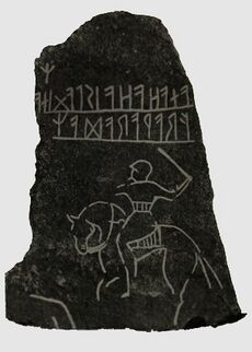 The only existing Scandinavian texts dating to the period before 1050[48] (besides a few finds of inscriptions on coins) are found amongst the runic inscriptions, some of which were scratched onto pieces of wood or metal spearheads, but for the most part they have been found on actual stones.[49] In addition, the runestones usually remain in their original form[48] and at their original locations,[50] and so their importance as historical sources cannot be overstated.[48]