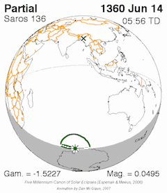 - ^ Espenak, Fred; Jean Meeus (October 2006). "Five Millennium Canon of Solar Eclipses, Section 4 (NASA TP-2006-214141)" (PDF). NASA STI Program Office. Archived from the original (PDF) on 2007-06-20. Retrieved 2007-01-24.