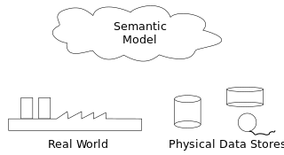 لا يمكن لبنية البيانات المنطقية لـ نظام إدارة قاعدة البيانات (DBMS)، سواءأكانت هرمية، شبكية، أو ارتباطي، أن تلبي تماماً المتطلبات للتعريف المفاهيمي للبيانات، لأنها محدودة النطاق ومنحازة نحو استراتيجية التنفيذ التي يستخدمها نظام إدارة قواعد البيانات. لذلك، أدت الحاجة إلى تعريف البيانات من العرض المفاهيمي إلى تطوير تقنيات نمذجة البيانات الدلالية. أي تقنيات لتحديد معنى البيانات في سياق علاقاتها المتبادلة مع البيانات الأخرى، كما هو موضح في الشكل. يتم تعريف العالم الحقيقي، من حيث الموارد والأفكار والأحداث وما إلى ذلك، بشكل رمزي داخل مخازن البيانات المادية. نموذج البيانات الدلالية هو تجريد يحدد كيفية ارتباط الرموز المخزنة بالعالم الحقيقي. وبالتالي، يجب أن يكون النموذج تمثيلًا حقيقياً للعالم الحقيقي.[1]