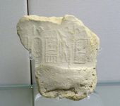The serekh for Peribsen was found pressed in earthen jar seals made of clay and mud and in inscriptions on alabaster, sandstone, porphyry and black schist vessels. These seals and vessels were excavated from Peribsen's tomb and at an excavation site in Elephantine. One clay seal with Peribsen's name was found inside the mastaba tomb K1 at Beit Khallaf.[6][7]