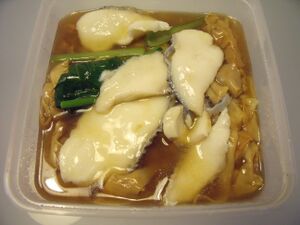Shahe fen (沙河粉), or simply he fen (河粉), is a type of wide Chinese noodle made from rice.[1][2] Its Minnan Chinese name, 粿條 (pronounced guǒtiáo in Mandarin), is adapted into alternate names which are widely encountered in Southeast Asia, such as kway teow, kwetiau, and kuetiau; Thai: ก๋วยเตี๋ยว (kuaitiao). Shahe fen is often stir-fried with meat and/or vegetables in a dish called chao fen (炒粉; pinyin: chǎo fěn). While chao fen is a transliteration of Mandarin, chow fun from Cantonese (see the main article at beef chow fun) is the name most often given to the dish in Chinese restaurants in North America.