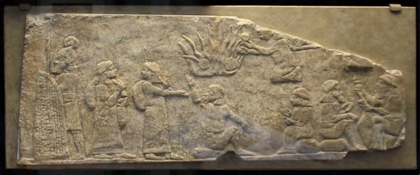 الأسرى البابليون تحت مراقبة الحرس الآشوري، في عهد آشوربانيپال، 668-630 ق.م.، نينوى، المتحف البريطاني ME 124788