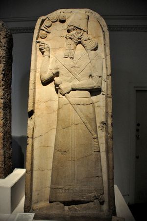صورة مقربة من نصب يصور الملك شمشي-عضد الخامس في المتحف البريطاني  | |