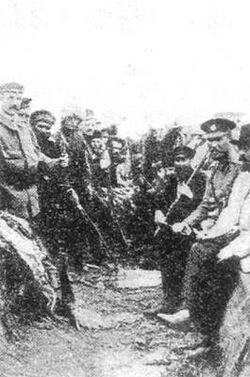 During the Boxer Rebellion in 1900, Qing forces attempted to blockade Russian boat traffic on the Amur near Aigun, starting from 16 July, and attacked Blagoveshchensk along with Chinese Honghuzi bandits.[10] In response to these attacks the military governor of the Amur region, Lieutenant-General Konstantin Nikolaevich Gribskii, ordered the expulsion of all Qing subjects who remained north of the river.[1] This included the residents of the villages, and Chinese traders and workers who lived in Blagoveshchensk proper, where they numbered anywhere between one-sixth and one-half of the local population of 30,000.[1][2] They were taken by the local police and driven into the river to be drowned. Those who could swim were shot by the Russian forces. Thousands died as a result.[1][11]