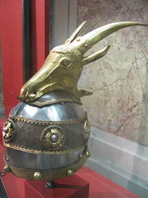 خوذة سكندربك محفوظة في متحف كونسثيستوريشس في ڤيينا.