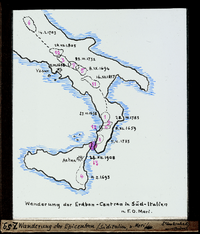 - ^ <<Meridionale: in part.: che fa parte delle regioni continentali e insulari del Mezzogiorno d'Italia (delimitate convenzionalmente dai fiumi Garigliano e Sangro), le quali, in età prerisorgimentale, costituivano il Regno delle due Sicilie.>> Battaglia, Salvatore (1961). Grande dizionario della lingua italiana, UTET, Torino, V. X, p.160.