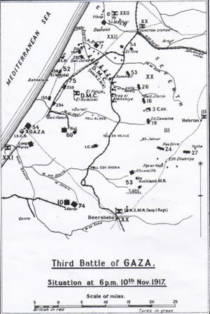 - XXII Corps commanded by Refet Bey with headquarters at Jebaliye holding the strongly fortified positions around Gaza with the 3rd, 53rd Divisions