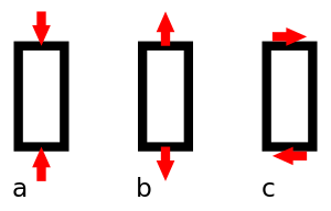 - Axial loading – The applied forces are collinear with the longitudinal axis of the member. The forces cause the member to either stretch or shorten.[2]