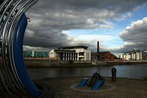 مركز تكنويوم، واحد من أول المباني الجديدة التي بنيت كجزء من مشروع تنمية إس إيه1 في منطقة أحواض بناء السفن.