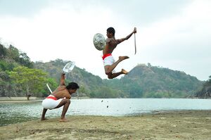 The earliest extant manual on ancient Indian swordsmanship is the Agni Purana, which gives 32 positions to be taken with the sword and shield. Indian swordplay is highly athletic, taking advantage of the weapon's lightweight. Techniques make extensive use of circular movements, often circling the weapon around the swordsman's head. Systems exist which focus on drawing the sword out of the opponent's body. The attacking weapon is rarely used for blocking, relying either on a shield as a parrying tool or a second sword. Dual-wielding is thus a common and valued skill in the Indian subcontinent. Sparring is done through an exercise called gatka, in which the practitioners fight with wooden sticks to simulate swords.