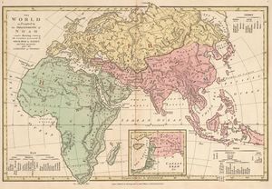 The Table of Nations is expanded upon in detail in chapters 8–9 of the Book of Jubilees, sometimes known as the "Lesser Genesis," a work from the early Second Temple period.[16] Jubilees is considered pseudepigraphical by most Christian and Jewish denominations but thought to have been held in regard by many of the Church Fathers.[17] Its division of the descendants throughout the world are thought to have been heavily influenced by the "Ionian world map" described in the Histories of Herodotus,[18] and the anomalous treatment of Canaan and Madai are thought to have been "propaganda for the territorial expansion of the Hasmonean state".[19]