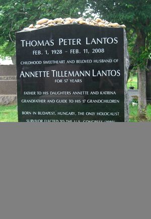 1. ^ "AP News Alert". Associated Press. 2008-02-11. Rep. Tom Lantos of California, the only Holocaust survivor ever to serve in Congress, died early Monday morning, his spokeswoman said.[dead link]
