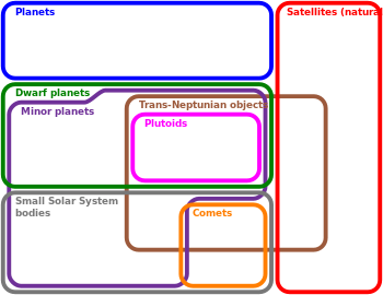 مخط أويلر يوضح أنواع أجسام المجموعة الشمسية.