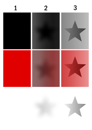 مقارنة بين 1:العتامة، 2:الشفوفية، 3:الشفافية، وخلف كل لوحة يوجد نجمة