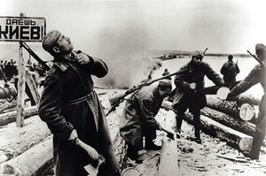 وإبان الحرب العالمية الثانية خضعت أوكرانيا للاحتلال الألماني، ودمرت البنية التحتية التي كانت السلطة السوفييتية قد بنتها في الحقبة السابقة. وبعد استسلام ألمانية وانتهاء الحرب، بدأت مرحلة إعادة بناء ما دمرته الحرب. فأعيد تأهيل المزارع وبناء المصانع وترميم الطرق والسكك الحديدية. وفي عام 1954 احتُفِلَ بالذكرى الـ 300 لاتحاد أوكرانيا مع روسيا. وفي هذا العام أيضاً ضمت جمهورية القرم التي كانت تتبع روسية الاتحادية إلى أوكرانيا.