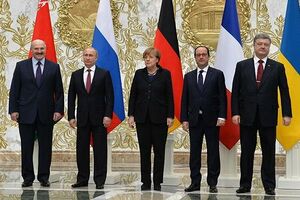 في فبراير 2015، بعد قمة استضافتها مينسك، بلاروسيا، تفاوض پوروشينكو على وقف إطلاق النار مع القوات الانفصالية. تُعرف الاتفاقات الناتجة باسم بپوتوكول مينسك. وشمل ذلك شروطاً مثل سحب الأسلحة الثقيلة من خط المواجهة وإضفاء اللامركزية على مناطق المتمردين بحلول نهاية عام 2015. وشمل ذلك أيضًا شروطًا مثل السيطرة الأوكرانية على الحدود مع روسيا في عام 2015 وانسحاب جميع القوات الأجنبية من الأراضي الأوكرانية. بدأ وقف إطلاق النار في منتصف ليل 15 فبراير 2015. كما وافق المشاركون في وقف إطلاق النار هذا على حضور اجتماعات منتظمة لضمان احترام الاتفاقية.[58]