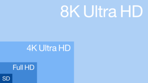 هي مضاعفة للمعيار 4K، أي بضرب الطول والعرض لأعلى كثافة في 2 لتحصل على الكثافة الأعلى والتي تصبح 4320 عرض × 7680 طول (33.18 ميجابكسل).[8][15][16]