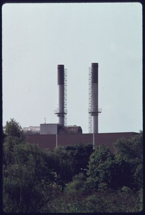 Same smokestacks in 1975 after the plant was closed in a push for greater environmental protection