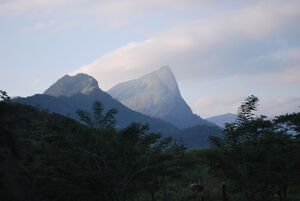 The natural geography can be categorized into nine regions: The Sierra de Zongolica, the Tecolutla Region, the Huayacocotla Region, the Metlac River area, the Tuxtlas Region, the Central Region, the Laguna del Castillo Region, the Pueblo Viejo-Tamiahua Region and the Laguna de Alvarado Region.[14] The topography changes drastically, rising from the narrow coastal plains to the highlands of the eastern Sierra Madre. Elevation varies from sea level to the Pico de Orizaba, Mexico's highest peak at 5،636 m (18،491 ft) above sea level.[13][16] The coast consists of low sandy strips interspersed with tidewater streams and lagoons.[15] Most of the long coastline is narrow and sandy with unstable dunes, small shifting lagoons, and points.[14]