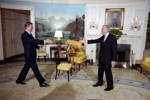 As he had promised on his last show as anchor in 1981, Cronkite continued to broadcast occasionally as a special correspondent for CBS, CNN, and NPR into the 21st century; one such occasion was Cronkite anchoring the second space flight by John Glenn in 1998 as he had Glenn's first in 1962. Cronkite hosted Universe until its cancellation in 1982.[69] In 1983, he reported on the British general election for the ITV current affairs series World In Action, interviewing, among many others, the victorious Prime Minister, Margaret Thatcher.[70] Cronkite hosted the annual Vienna New Year's Concert on PBS from 1985 to 2008, succeeded by Julie Andrews in 2009.[71] For many years, until 2002, he was also the host of the annual Kennedy Center Honors.