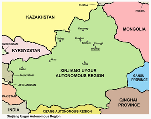 31. ^ Falkenheim, Victor C.; Hsieh, Chiao-Min (Aug 9, 2018) [Online article added Jul 26, 1999]. "Xinjiang: autonomous region, China". Encyclopædia Britannica. Retrieved 2018-08-19.